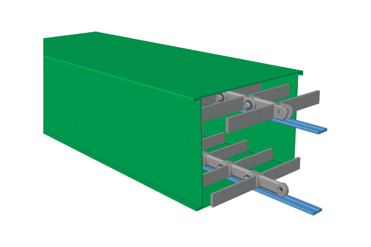 The wear rails are specifically designed for use with drop-forged, heat-treated chain links. Typical applications include drag chain conveyors handling abrasive bulk materials such as minerals, aggregates, and industrial granulates. They act as a wear-resistant running surface, protecting bottom plates and other critical areas of the conveyor casing.