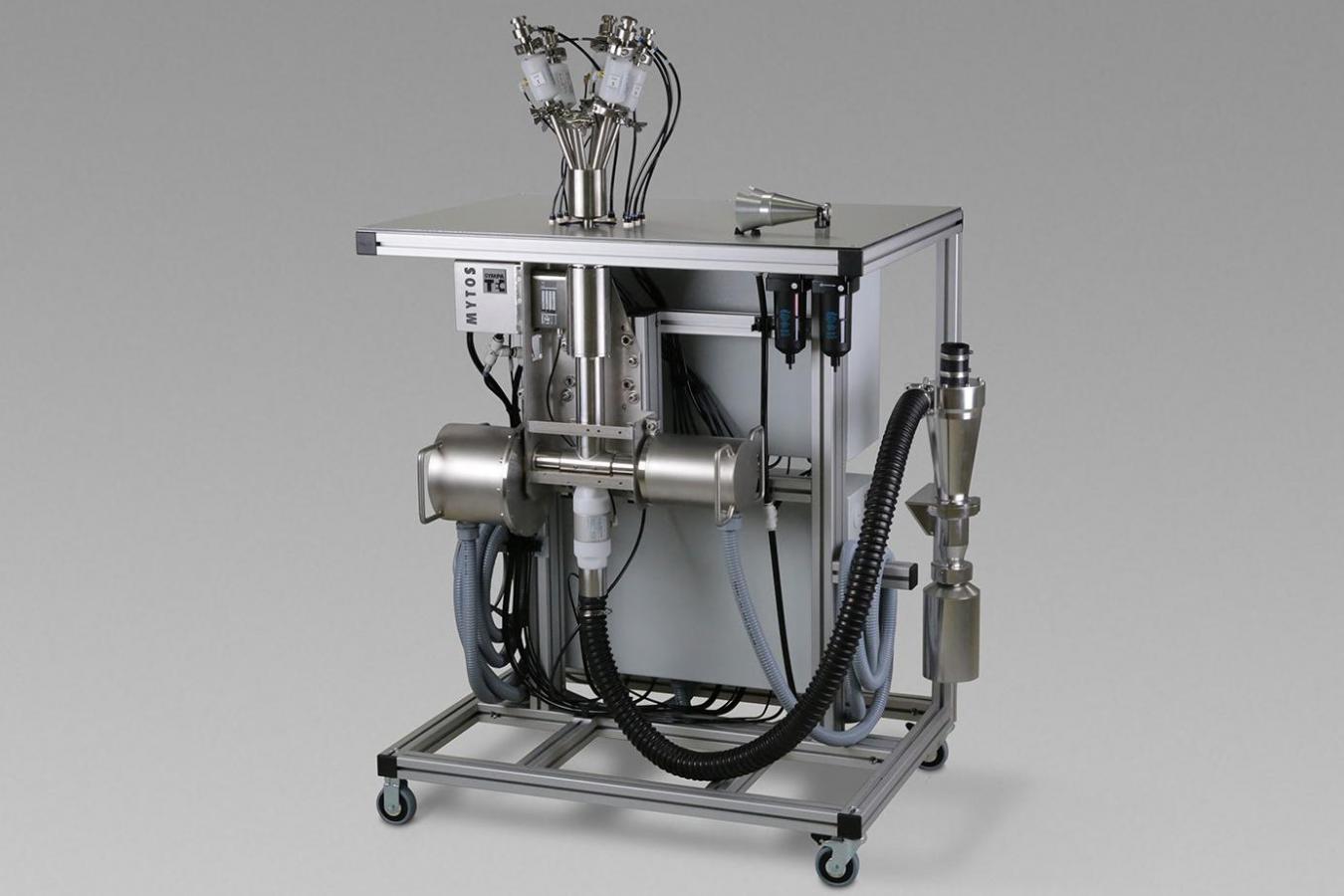 - Efficient dry dispersion ensuring complete dispersion for fine, even cohesive powders down to the submicron range with MYTOS