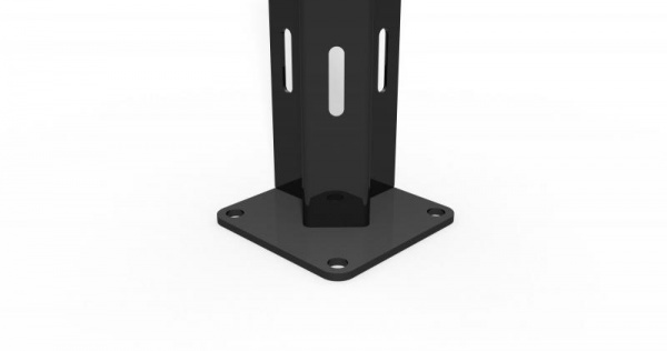 The standard post in the Securyfence range is strengthened by turning the base plate 45 degrees. This means that bolts for anchoring to the floor are no longer located at the four corners, but at the four sides of the post. The forces exerted on the post can therefore be better absorbed and dissipated.