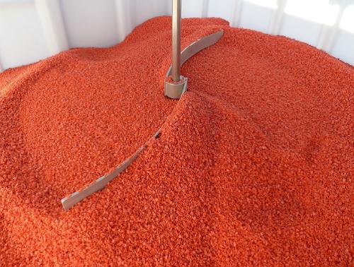 In the silo a slowly rotating paddle, with a maximum diameter of 2500mm, will planish the bulk from the inside to the outside. Therefore the edge area will be filled with bulk and the capacity of the silo increases.