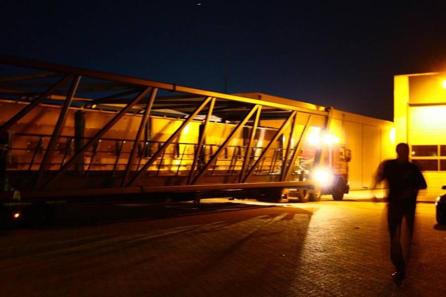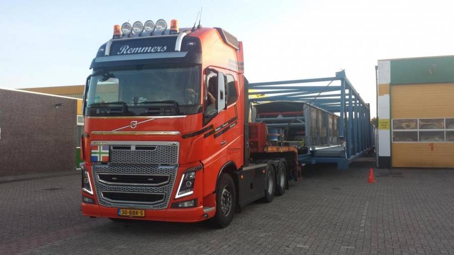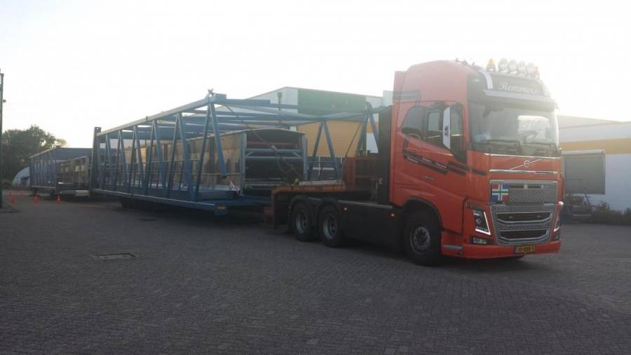 The first parts of the conveyor belts designed and produced by Jansen&Heuning are transported to the Eemshaven with Convoi Exeptionnel. There they are used for the sustainable use of the power plant of RWE. Herewith up to 20% biomass (wood chips) can be added as sustainable fuel for the 2 power generators, each with a power of more than 700 MegaWatt. These belts are in total 300 meters long and have a capacity of 1600 m³ per hour.