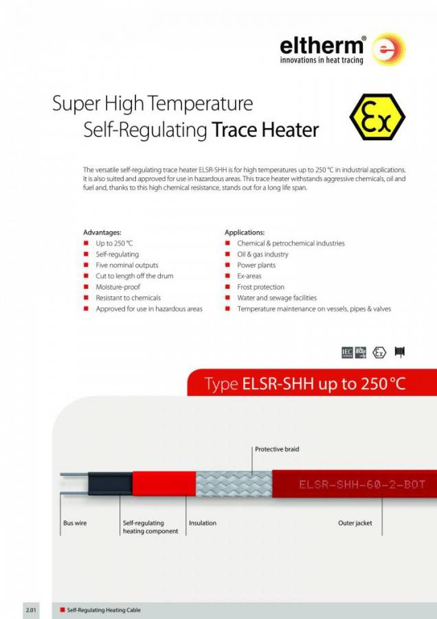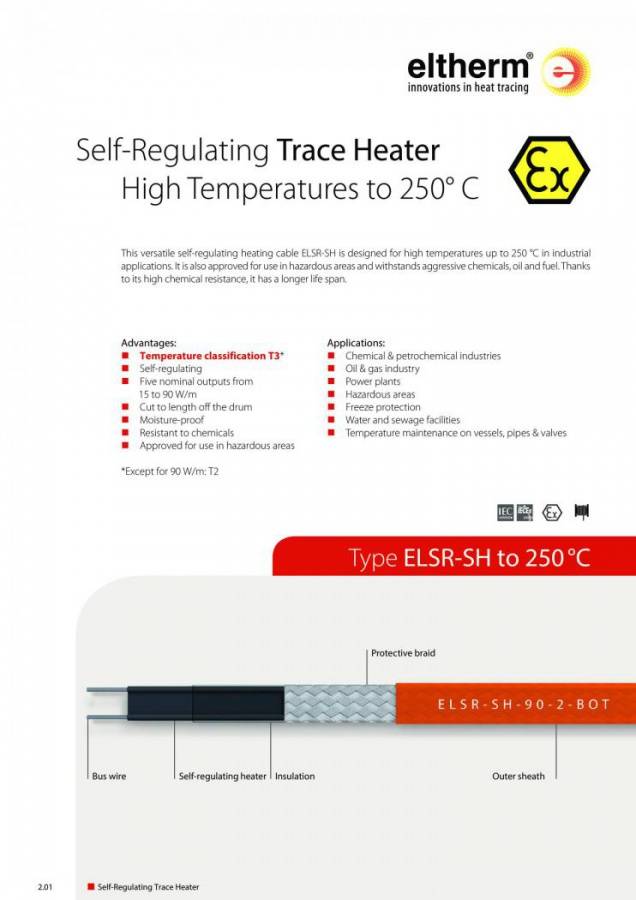 The self-regulating trace heaters ELSR-SH and ELSR-SHH are designed for high temperatures up to 250 °C in industrial applications.