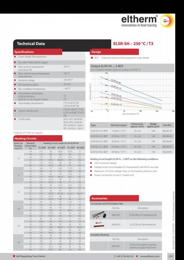 The self-regulating trace heaters ELSR-SH and ELSR-SHH are designed for high temperatures up to 250 °C in industrial applications.