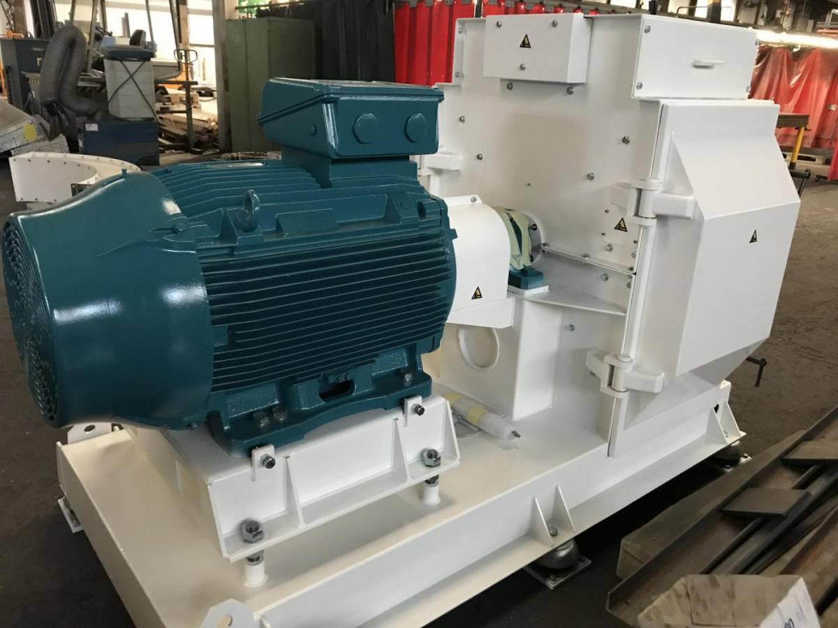A hammer mill is basically a machine with which coarse particles can be ground into smaller particles. The reduction of material particles is done by subjecting the material supplied to rapidly rotating hammers, which are hinged to the rotor. At the bottom is a sieve, which drains the product as soon as the desired grain size is reached. This screen deck is relatively easily interchangeable. The air management is also very important for the fineness and capacity.