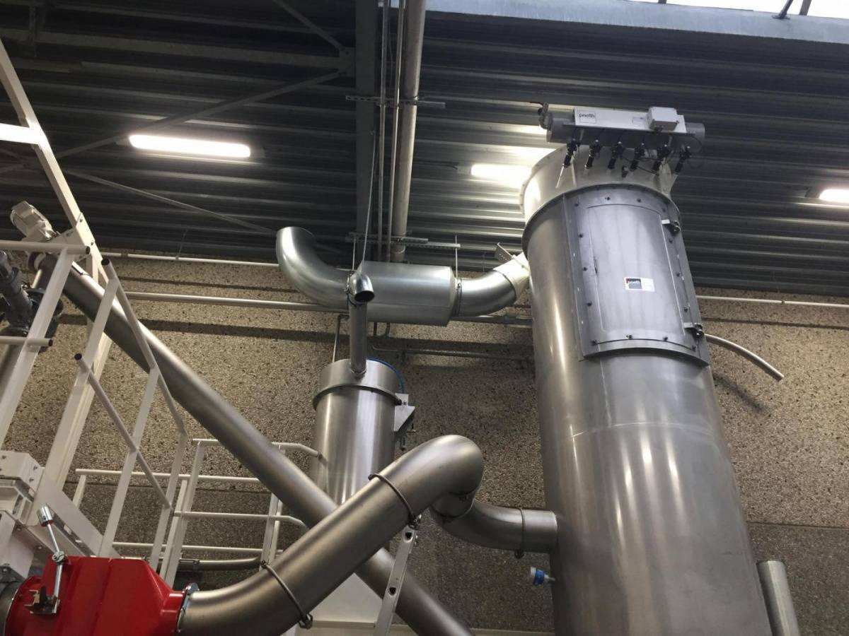 By using a larger length of filter hoses (also called sleeves) i.c.m. special filter cleaning, it is possible to achieve a high suction capacity with a small diameter of filter housing. Thanks to an innovative design, it can even be used for fatty and / or sticky powders