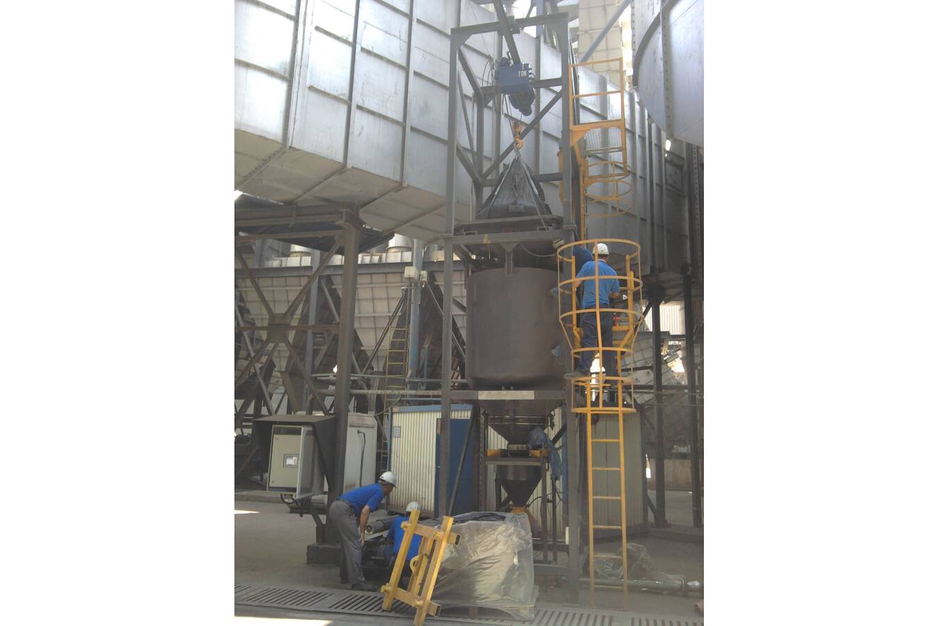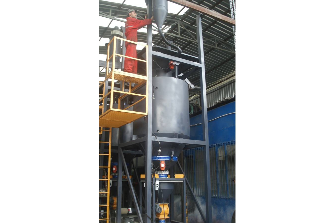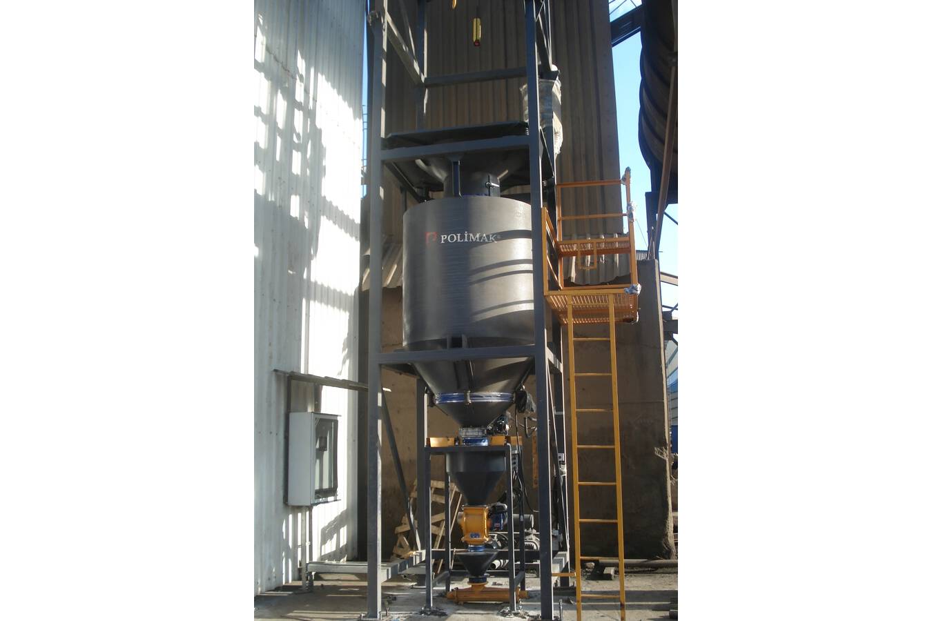 Powdered activated carbon (PAC) comes in the big bag and placed to the carrier platform of the unit by the help of forklift or hoist. The FIBC bag outlet connection is released, activated carbon is fed into the powder hopper and discharged into the storage silo. The dosing system below the silo is used to discharge the silo and feed the pneumatic conveying pipeline automatically. PAC is injected into the pneumatic conveying pipeline at the desired speed by the help of a feeder placed under the weighing device. PAC conveying in the pipeline by the help of a roots blower is injected into the process line which is generally another pipeline in the dust collection line. This injection process may operate in the same or opposite direction with the airflow. PLC controlled automation system is used to control the precisely definable amount of injected PAC to the pipeline. Material transfer at desired capacity, speed and time are regulated by the control panel.
