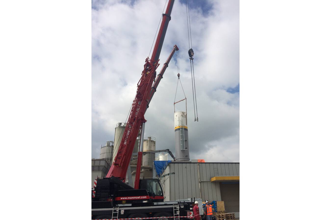 At Remix Droge Mortel BV - Hardenberg, a 12 meter high 2 compartment silo was placed last week. In order to increase the existing production yield, Kemp bv was commissioned to adjust the production process, by placing a silo directly above the bagging machine.