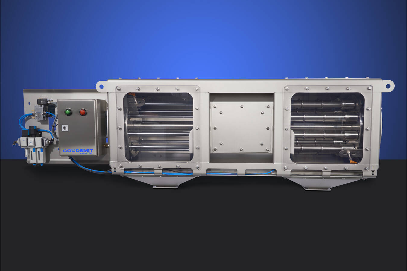 With many magnetic separators, the magnets need to be removed from their housing during a cleaning cycle to remove the trapped metal particles. However, Goudsmit knows from experience that this method creates the risk that metal falls back into the product flow and that production must be suspended in order to clean the separator. That is why the company has designed this new system in such a way that the magnets remain in the product flow during cleaning. Only the metal-contaminated sleeves around the magnetic bars are removed together with the metal particles, which are subsequently replaced by clean sleeves. This makes it possible to clean the magnet without stopping production.