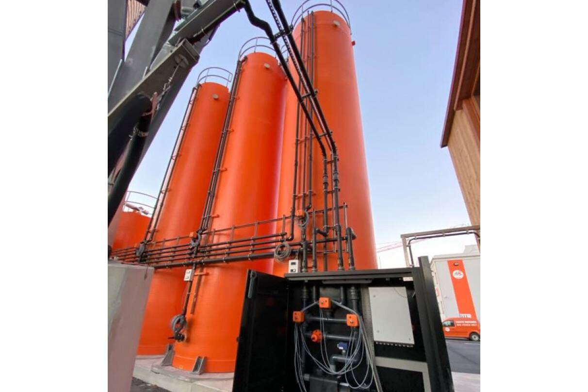 Six composite flour storage silos at a new bakery