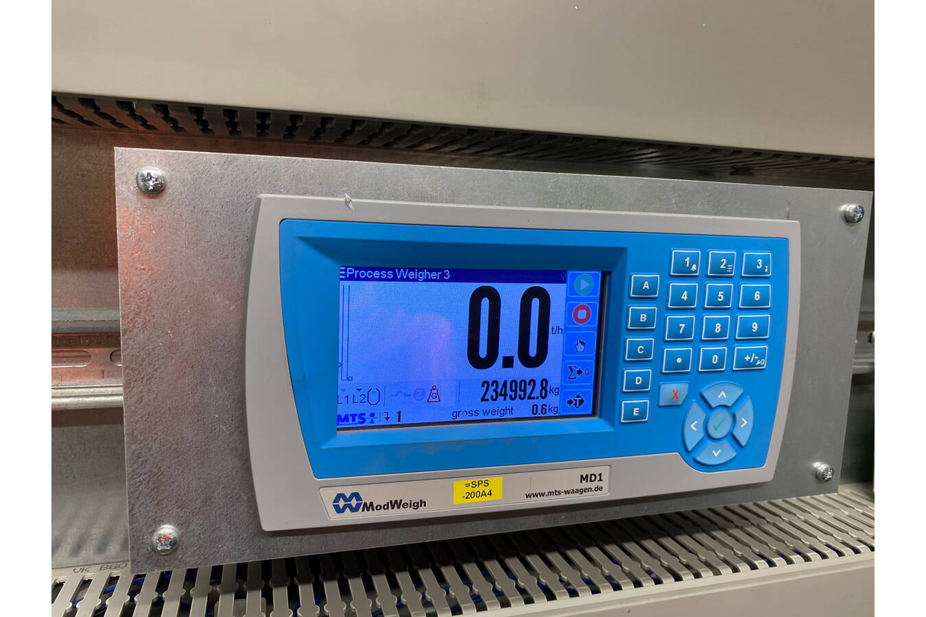 Filling and emptying process as well as the load cell signals is controlled and evaluated by the powerful control unit ModWeigh Batch. On the one hand, the control unit records the weight value of the weighing hopper and accumulates the individual batch values in the totalizer. At the same time, the electronic also generates the flow rates in kg/h or t/h from the weight values of the individual batches and the time unit determined for a weighing. The flap is controlled self-sufficient via the ModWeigh. The measurement data can also be transmitted to the customer’s process control system via Profibus DP or Profinet.