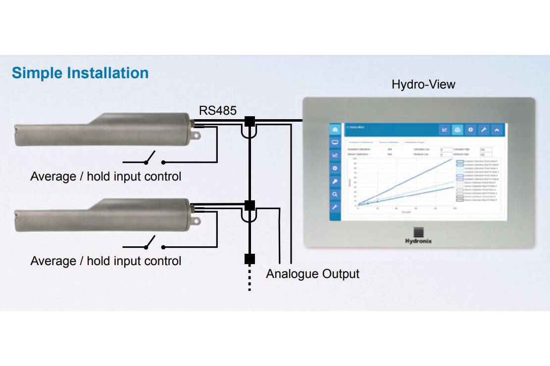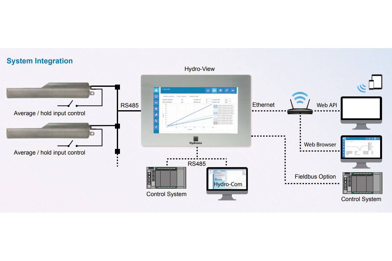 The Hydro-View connects a network of up to 16 Hydronix sensors with multiple systems simultaneously. Connections can be made using TCP/IP, existing RS485 networks implementing the Hydro-Link Protocol or through the Fieldbus option.