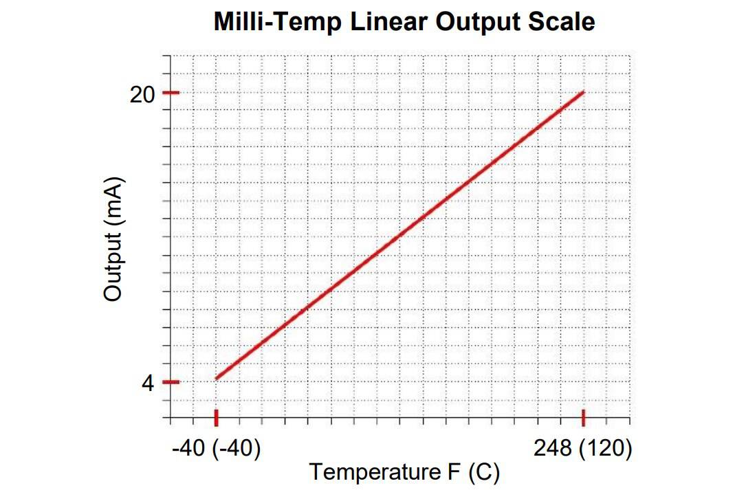 A loop powered analogue sensor with 4-20 mA linear output that is scaled across a temperature range for continuous bearing and surface temperature monitoring.
