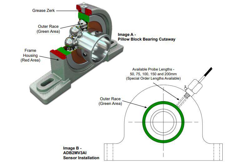 The Milli-Temp series can be used on any application where bearing temperature monitoring is needed. The sensor has been designed to allow the depth of the probe to be adjustable depending on the application. This adjustability allows the tip of the probe to be placed in the optimal position for monitoring bearing temperature and also enables verification using the 4B ADB Tester.