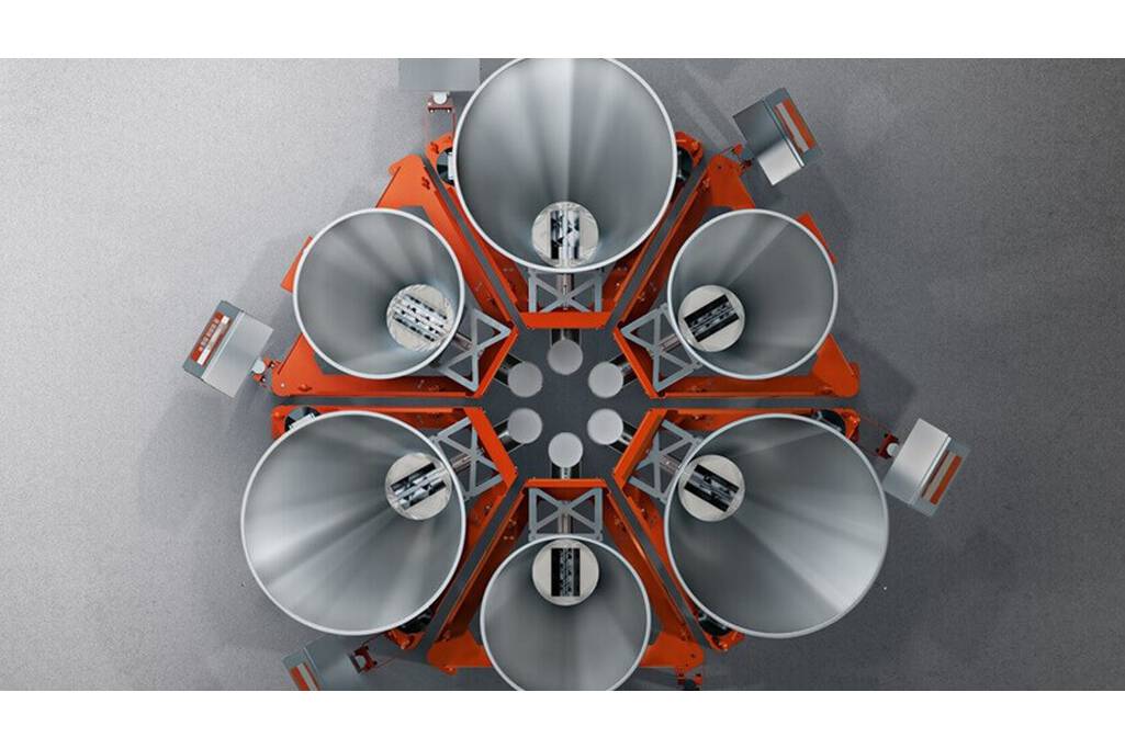 Theoretically a feeding system with six ProRate PLUS-L feeders can feed up to 28.8 m3/h [1017 ft3/h] on a footprint of only 7 m2 [75 ft2].