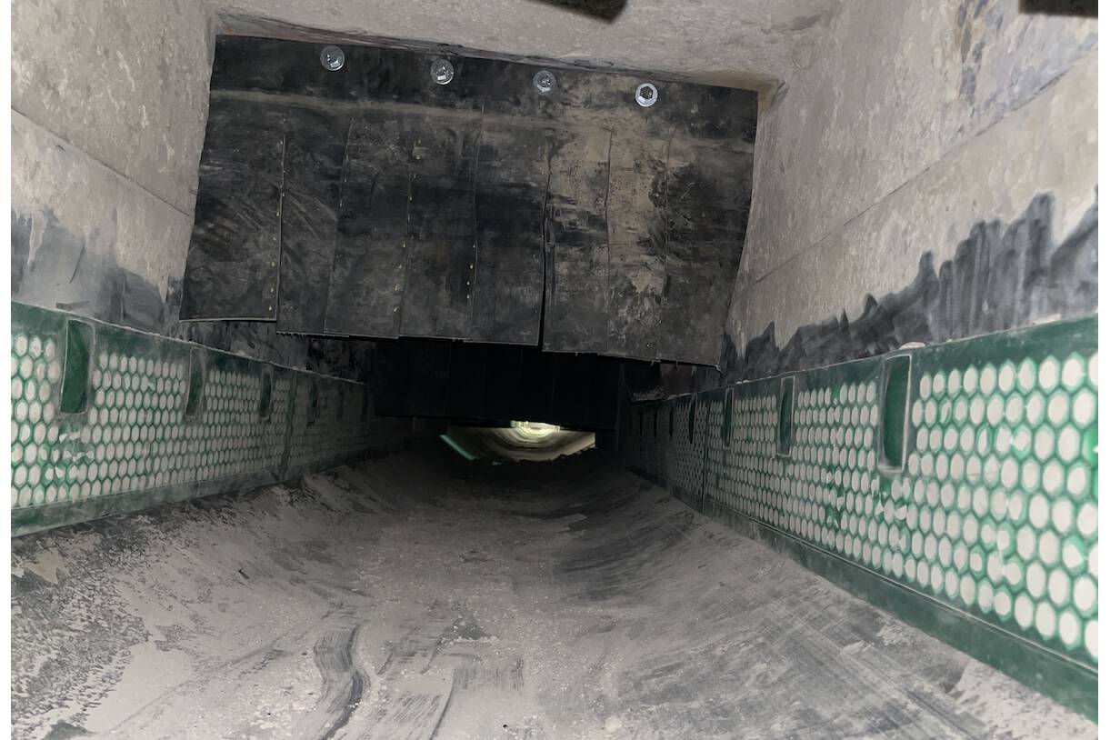 A comprehensive site inspection was conducted by ScrapeTec’s Area Technical Representative; it was noted standard chute sealing was used together with a basic clamping system positioned outside the chute. The current skirting system in place and lack of inner skirting was insufficient and failed to contain excessive dust emission and material spillage experienced at the transfer point. Dust and spillage levels were high and constant during ship unloading process. This provided zero visibility of the 70-metre-long conveyor tunnel and had greatly affected maintenance team’s ability to monitor efficiencies and bottlenecks in the production process.
