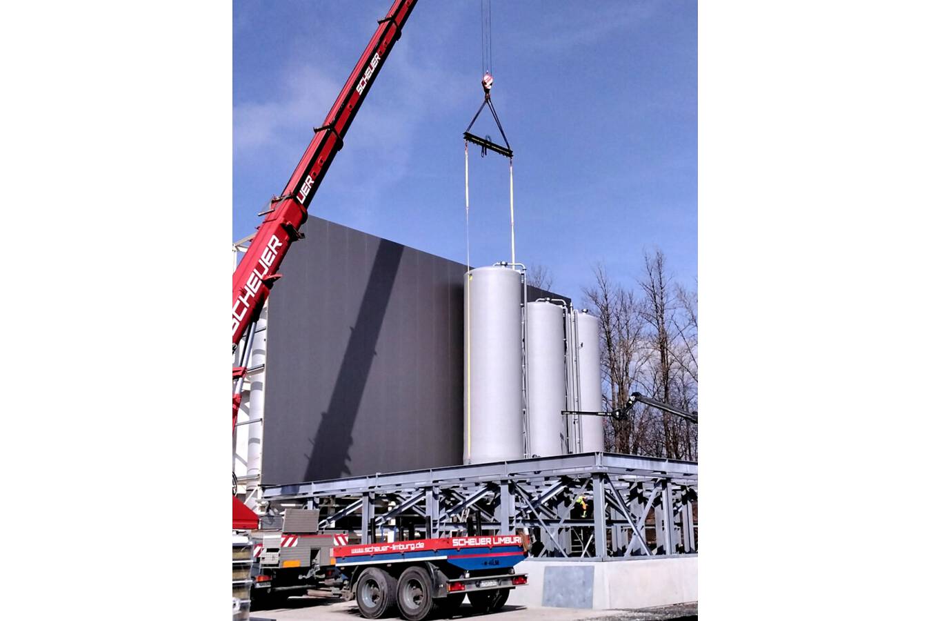 M.I.P. is currently installing 30 silos for a German manufacturer of compound animal feed. The silos have a capacity of 60m³, a diameter of 2.800mm and a height of almost 12 metres.