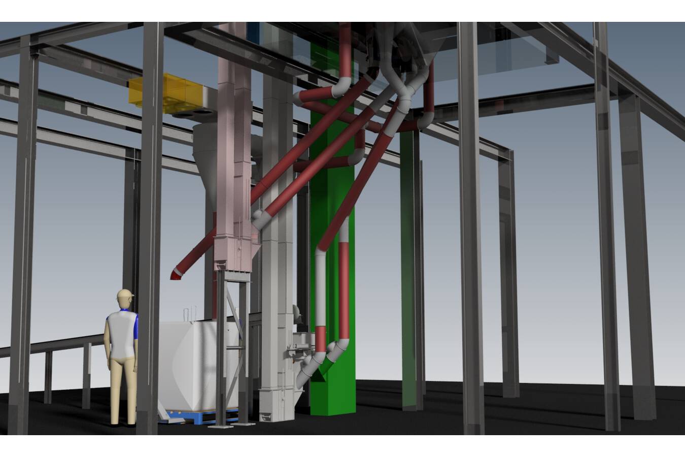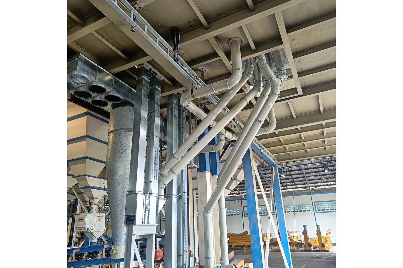 The two elevators take care of the supply and discharge of the sorter. The extraction system (fan and cyclone) extracts the dust from the process for the proper operation of the sorting machine.