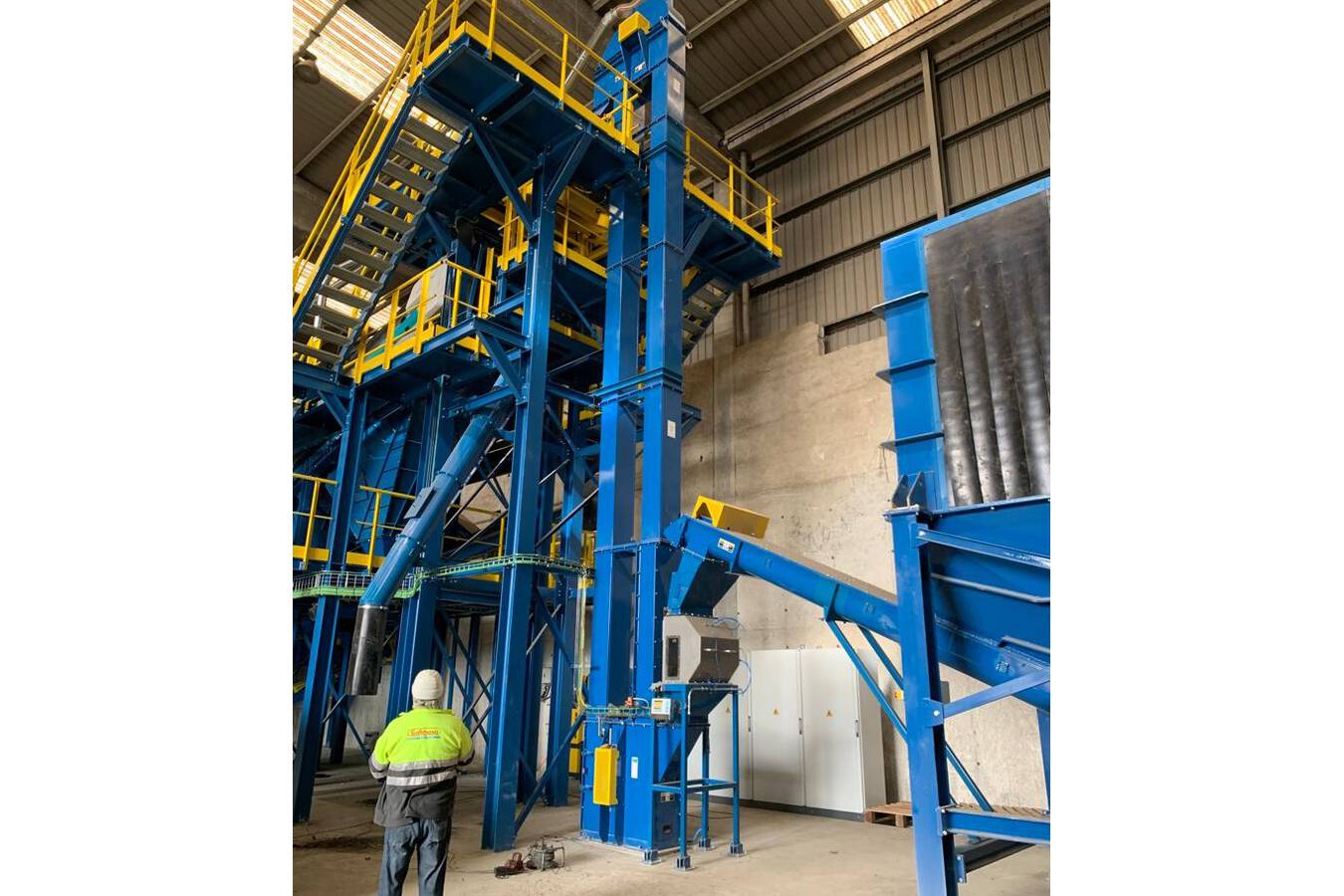 Sinfimasa designed a double auger with screw conveyors and a bucket elevator for a difficult material, consisting of very different fractions.