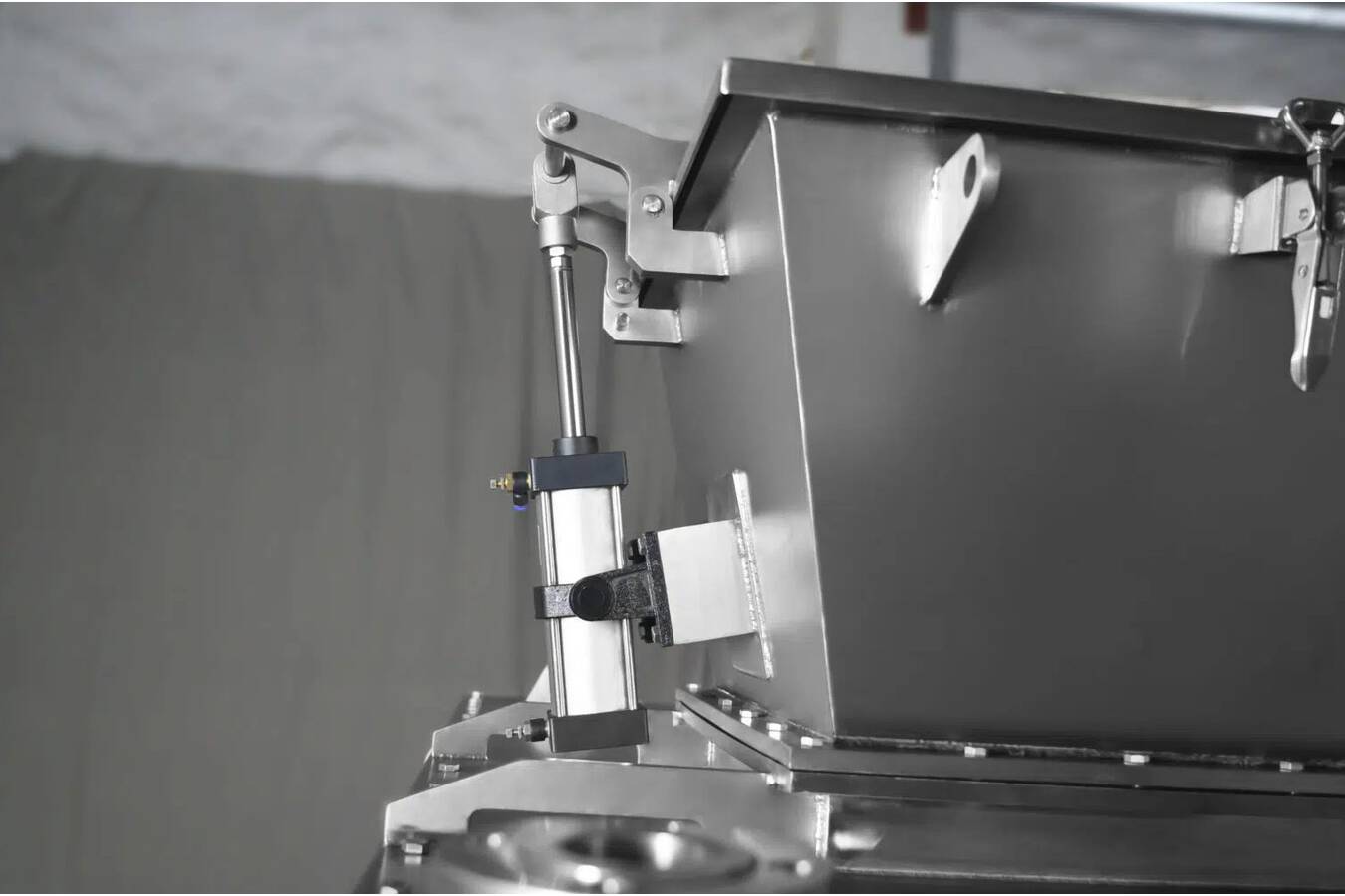 The unit is sanitary in construction and includes a bulk bag/tote loading option that was specified by the customer. In addition, the center bottom discharge is also designed to fill super sacks when finished mixing.