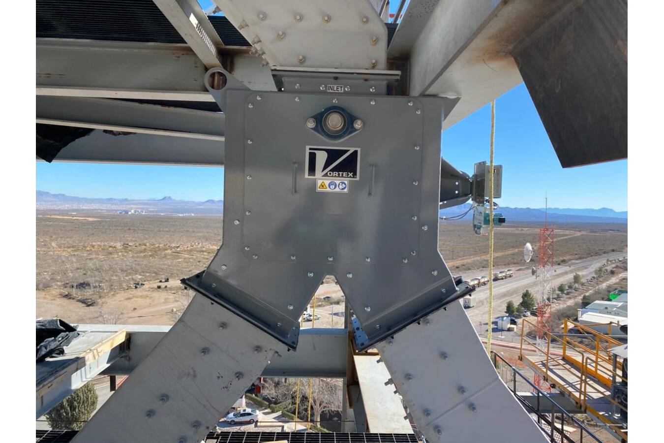 A construction company in Sonora, Mexico, contacted Vortex in 2021 to source a chute diverter strong enough to handle the abrasion from limestone processing. Vortex supplied two 400mm (16”) Pivoting Chute Diverters (PCD) each weighing 500 kg (1103 lbs). Lime and limestone are handled through these diverters. The Vortex PCDs are designed to divert heavy-duty and/or abrasive dry bulk solid materials from one source toward two or three destinations in gravity-fed applications.