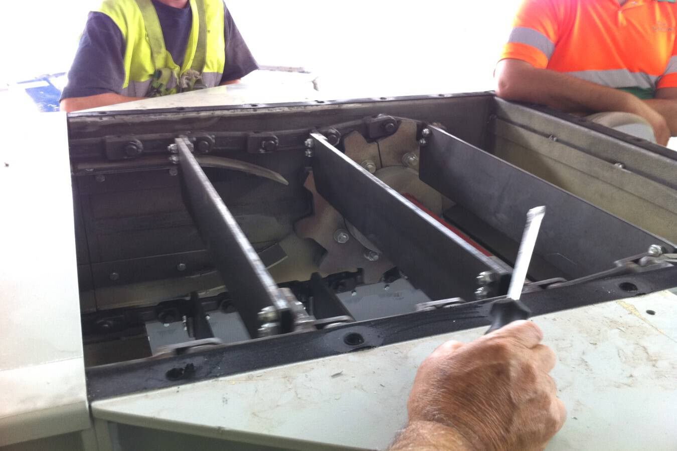 Special guides were installed to prevent the chain from lifting in the curved sections, as well as drive and return wheels made of wear-resistant steel. The firewall-type guillotine slides were equipped with a fast pneumatic actuator. The three conveyors were also equipped with rotation and jam detectors to monitor correct operation, as well as different inspection points, registers and inspection windows to facilitate maintenance.