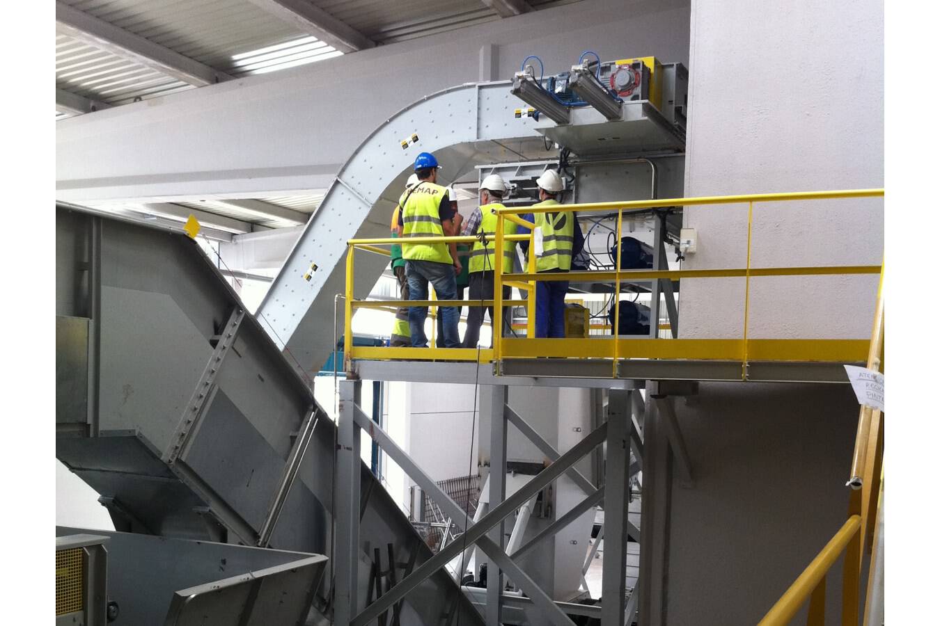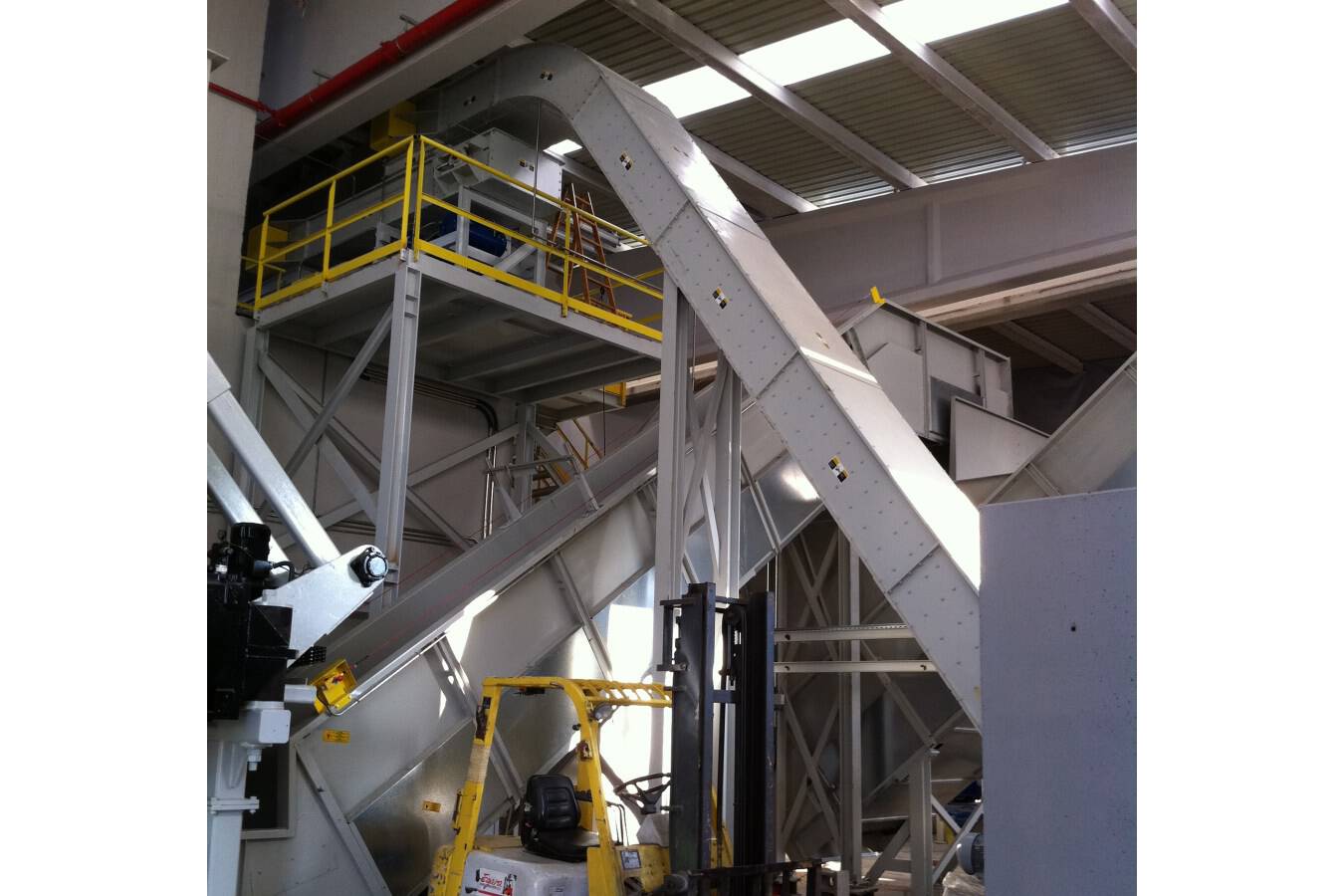 To solve this need, Sinfimasa designed three chain conveyors; the first one would transport the SRF at a horizontal distance of about 10m and would elevate it to a height of 8m. The second conveyor is positioned horizontally over a distance of 4,7 m. An important function of this conveyor is to ensure the sectorization of two fire zones, so it was equipped with firewall slide gates.