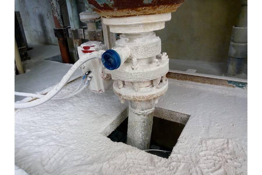 In the production of aluminum sulfate by a well-known chemical plant operator in Peru, 98% sulfuric acid is stored in tanks at a process temperature of around 80 °C (176 °F) and a process pressure of around 0.8 bar (11.6 psi). There is a high degree of humidity inside the container and the atmosphere is clean. The DK value is over 4. In order to coordinate a constant flow of material in the discharge pipes of the process vessel, timed to match the manufacturing process, the operations manager was looking for a robust and compact level monitoring system.
