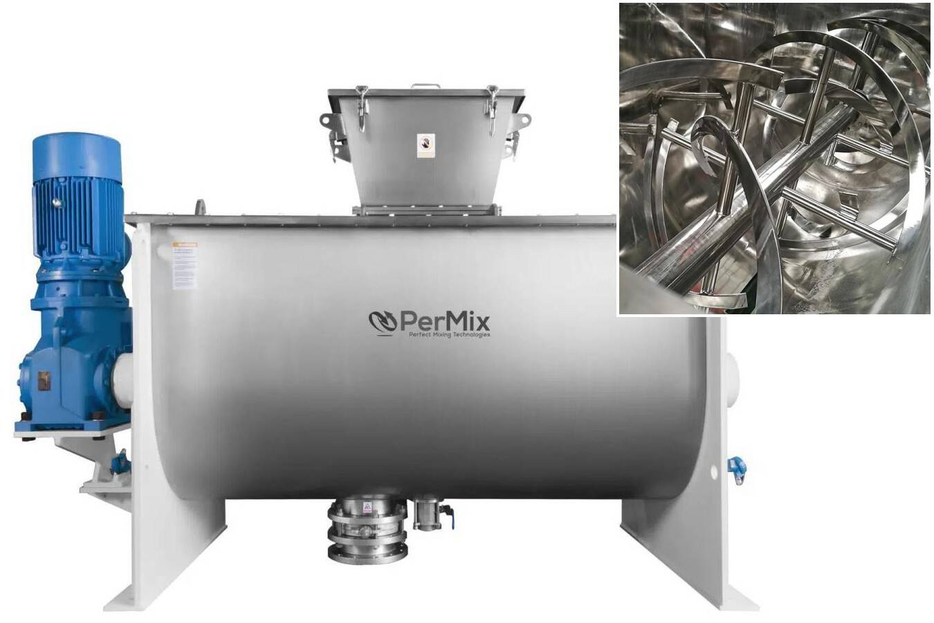 Ribbon mixers are a type of industrial mixer that are commonly used for mixing dry powders and granules. They feature a long, horizontal trough with a central shaft that has two or more helical ribbons, or agitators, mounted on it. The ribbons rotate at different speeds, which causes the materials in the trough to be pulled in different directions. This results in a thorough mixing of the materials in the mixer.