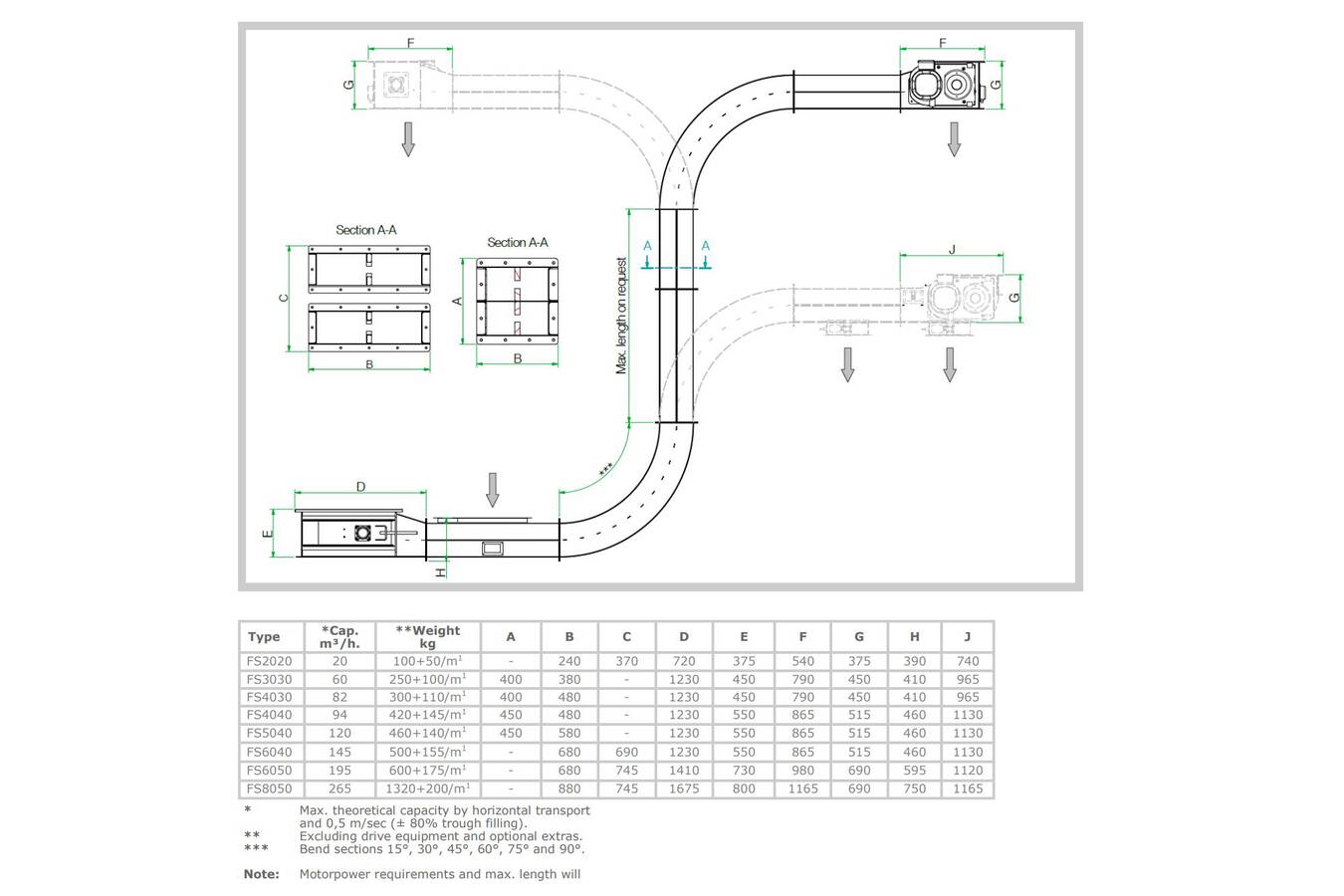 The Incline flight conveyor is designed for handling a variety of dry, free flowing bulk materials (also suitable for fine powders) either horizontally, on an incline or a combination of both.