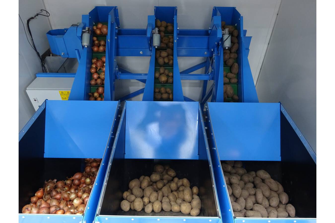 - Dosing unit with three containers inside the lockable vending machine housing, each with a volume of 100 liters
