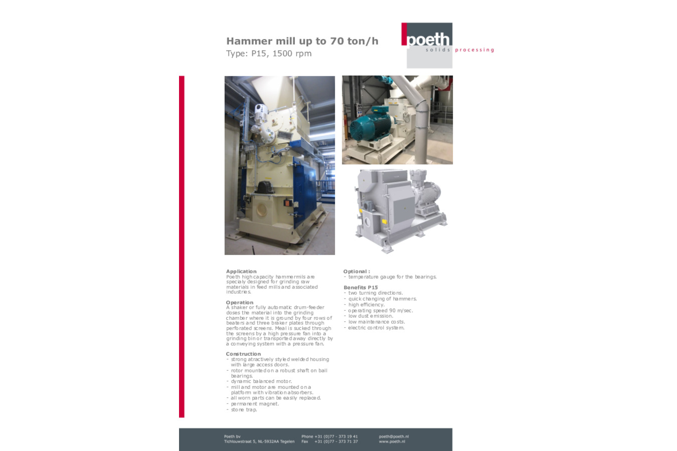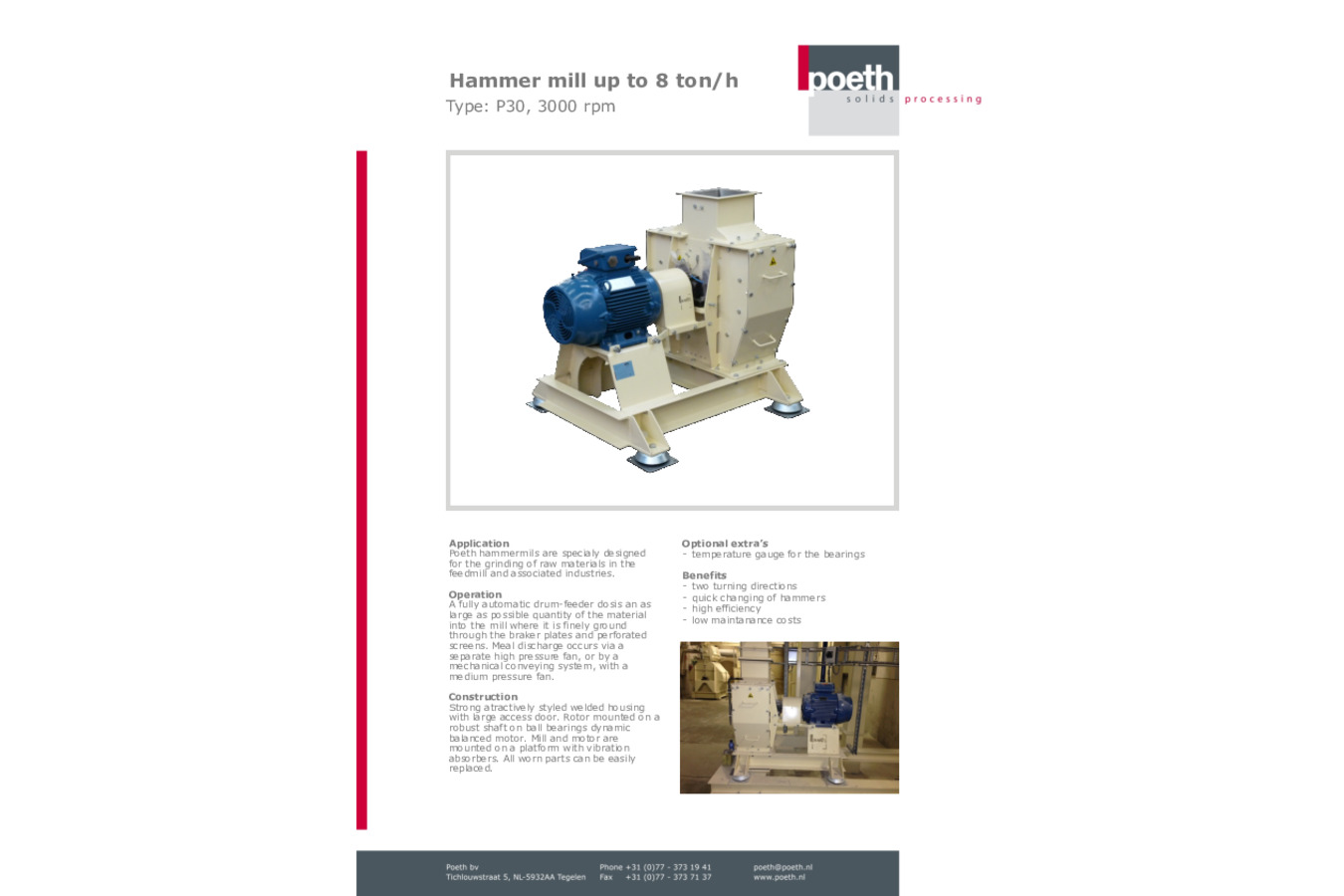 Poeth hammermils are specialy designed for the grinding of raw materials in the feedmill and associated industries.