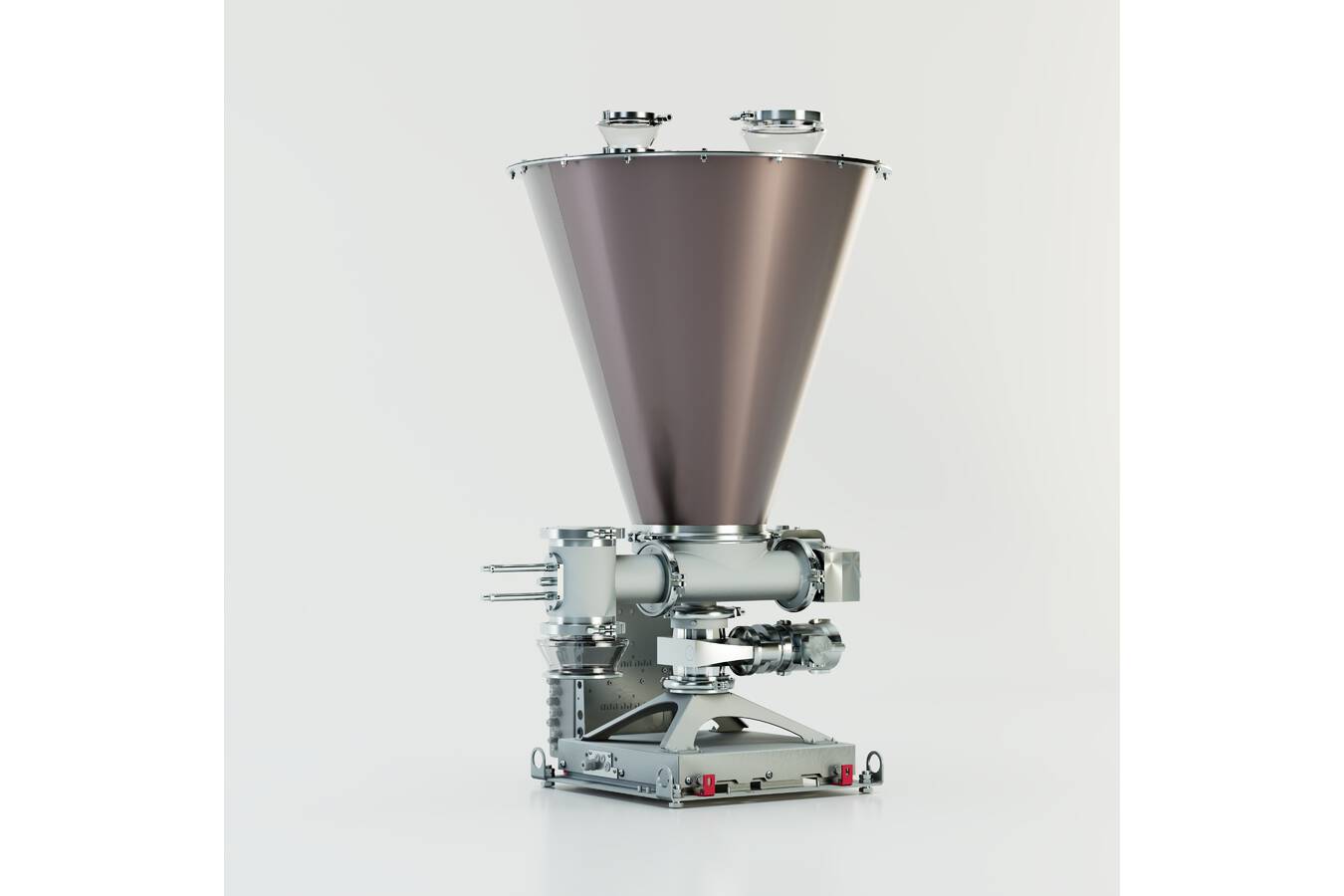 Schenck Process has placed particular emphasis on avoiding product contamination in the new development. To prevent metal-to-metal contact, components can be optionally coated. Smooth surfaces and limited relative speeds of the agitator and screw minimize metal abrasion. The patented design of the CS+ combines this with a quick-acting flap that prevents material from trickling out during the batch process.