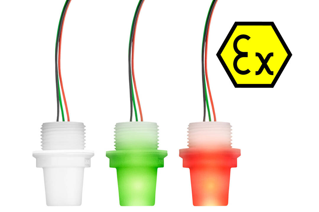 This indicator lamp, with dual-color switching and 360° visibility, displays switching states or status information even under challenging visibility conditions and from long distances. Its compatibility with level sensors and all common relay and transistor outputs enables easy integration into control cabinets and process systems. With various versions available, including multiple power supply options, it is ideally suited for industrial environments with the highest safety requirements.