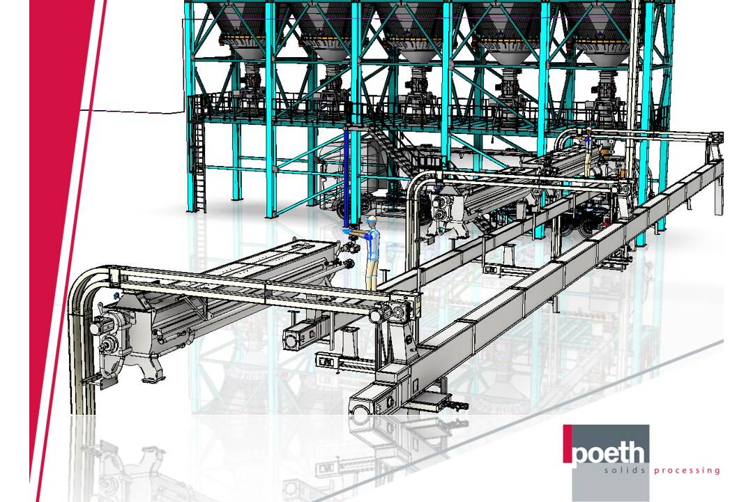 Poeth has introduced a cutting-edge mixing plant in Nazareth Belgium, delivering exceptional efficiency and meeting the highest quality standards. Having recently completed a successful project for baking ingredients, Escaut Valley quickly opted for Poeth’s expertise. The project required a solution that could accommodate limited height and minimize the number of components and machines. Poeth addressed these challenges with a well-thought-out design, focusing on clean-ability and accessibility. Ingredients are conveyed pneumatically from a bag emptying cabinet to the mixer, while a check weigher ensures precise batch contents. A vibrating sieve and metal detector guarantee the mixture is free from foreign bodies. Testing and commissioning The test facility at Poeth features a twin-shaft paddle mixer with liquid addition. Atomized nozzles finely distribute the liquid over the fluidized powder bed, achieving a dry mix homogeneity of 1:100,000 within 50 seconds. Thanks to meticulous preparation during the engineering phase, the assembly and commissioning were completed swiftly. Quality through leading-edge