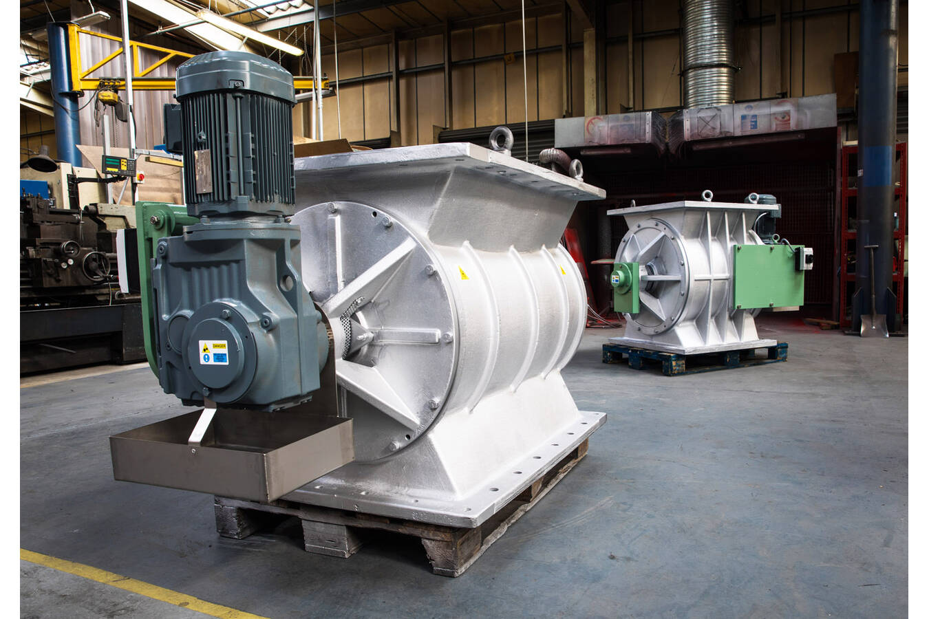 Rotary valves are commonly found in pneumatic conveying systems and can act as safety devices to isolate different process steps, such as airlocks, flame barriers, and explosion propagation valves. They are also used for metering applications, such as loading pneumatic conveying pipelines or filling of FIBCs. Designing and manufacturing rotary valves beyond the commonly used sizes requires specific knowledge and large machining centers. Large rotary valves are utilized for high throughputs or handling oversized and lumpy particles, particularly in the petrochemical and chemical industries.