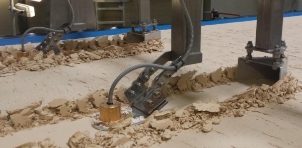 Earlier experiences of ACO have shown that just one sensor, on a 2.4 meter wide belt, is not sufficient for an accurate moisture measurement, due to this the moisture measurement consist out of two sensors. On one hand the reproducibility is higher and on the other hand the function of the sealing lip can be monitored (safety function). If there is a damaged sealing lip, the vacuum and consequently the drying process will not work as good as before. On one sensor the moisture value will increase highly. In this case the sealing lip should be replaced.
