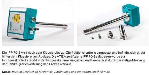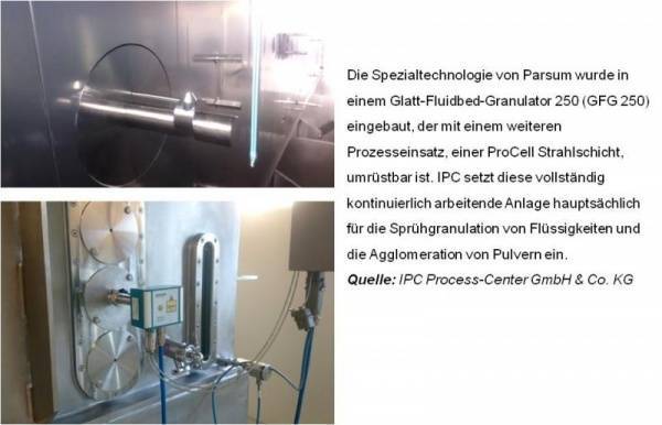 To achieve a high quality production results, Permanent measurements and checks during the process are indispensable. Since sampling and evaluations are very aufwndig laboratory and provide only delayed opening information is precisely in these production areas inline measurement, with can be checked at any time and possibly affect the processes, particularly important. The IPC Process Center GmbH & Co. KG, a company of the Glatt Group, the innovative granules and pellets for producing the pharmaceutical and food industry, uses therefore for permanent monitoring of their sensitive processes inline particle probes of Parsum GmbH. With the accuracy of the probes IPP 70-S and IPP 70-Se the Korngrenverteilung the intermediate and end products is constantly under control, so that the processes can, accurately controlled. The optimal Prozessfhrung significant financial savings are possible. The installation of two inline-probes fr gives us the advantage that the production process can be continuously monitored, and thus the process stability is greatly improved, declared January Demian, who as technical staff work preparation metrology and data analysis in IPC Process Center GmbH & Co. KG supervised. Especially in the start-up phase are diffizilen exact measurements essential to adjust all parameters fine and complete the process correctly in transition to be able to. The Measurement of Parsum was installed in a GFG 250 of Glatt, which is a further process used, a ProCell spouted, umrstbar. The dates of your Fllmenge, the so-called hold-up is, product- and verfahrensabhngig and lies between 200 and 700 kilograms, Demian. IPC continues this completely continuously operating system ever turned for the Sprhgranulation of liquids and the agglomeration of powders a. Installation of the probes IPP 70-Se and IPP 70-S The ATEX certified probe IPP 70-Se was incorporated directly into the process chamber to process control and observed the process sequence. Thus, by the direct measurement in the fluidized bed, the possibility to adjust relevant parameters in order to optimize the process and maximum auszuschpfen the potential of the plant. In this way, the circulating in anschlieenden sieve-grinding circuit quantity can be significantly reduced. The second probe type IPP 70-S is used for the sizing to the target group control. At this point the measurement of Korngrenverteilung Gutproduktes controlled and immediately released, if all requirements are met. The measurement forms for the operator gewissermaen the window gewhrt a direct insight into the process. Leads Stefan Dietrich, Managing Director at Parsum from. Normally the charge is berprft during the process by means of several samples; the measurement at the outlet and the associated parametric release decision provides for the pharmaceutical industry a completely new approach. Aufrstung with new disperser D-24 in addition to the probes is at IPC also a newly developed disperser for. The inline disperser ensures DAFR that even under the difficult conditions in the fluidized bed occurs a separation of the particles in the measurement. So even wet or sticky materials can be measured reliably, which is not possible without wre dispersion. When previous model D23 product components encamped in the direct measurement in the fluidized bed after some time on the disperser from. Since the probe but not in operation for cleaning is accessible, another measurement of Partikelgre was not possible without interrupting the process, Demian erlutert the situation. By switching to the new D 24 these problems were resolved and processing times of up to two weeks to be accomplished without purification.