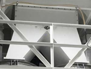 This dual cylinder Gravity Vee Diverter was manufactured from 316 stainless steel. The inlet contains a 610mm round hopper and the outlets are transitioned to match the install footprint. The diverter’s dual cylinder design is intended for use in limited space installations. By side-mounting the actuators, the gate’s overall length is shortened by a third.