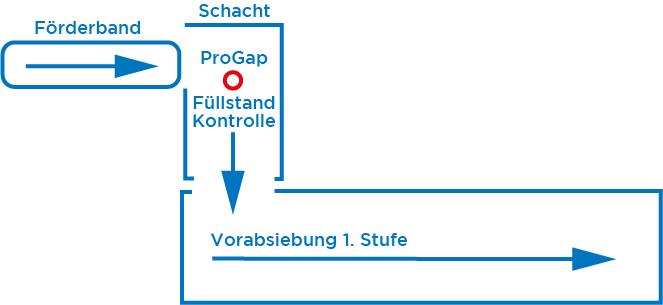 Upon reaching a critical level monitored by the ProGap S, the transportation is (initially) stopped.