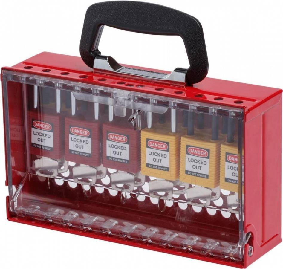 The SlimView Group Lock Box is an easy to carry lockbox with transparent cover that can store up to 12 padlocks and can double as a safe key deposit. It supports companies to more efficiently organise Lockout/Tagout and to reduce workplace accidents. 15-20% of workplace accidents are still related to maintenance, according to Eurostat.