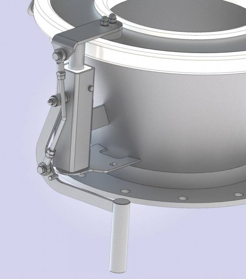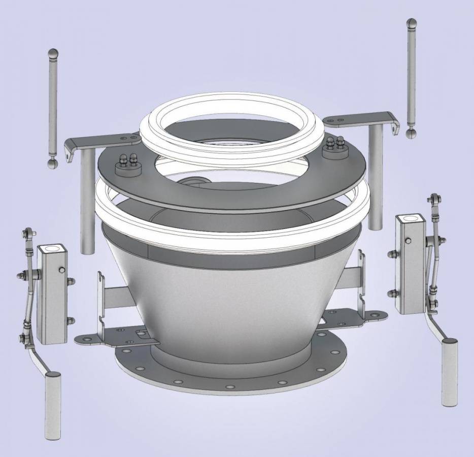 Using the hopper is also extremely simple: the big bag to be emptied is connected by simply operating a lever, which can be done without a great deal of effort thanks to pneumatic springs. After that, the big bag outlet can be connected to the product-guiding pipe inside the hopper, the big bag can be opened, and the product can be emptied in a controlled way. The (often dust-filled) air displaced by this escapes upwards via a space between the hopper and guiding pipe where it is extracted by an aspiration nozzle. That means that dusty products can also be emptied without exposing the production environment or operating personnel to any dust.