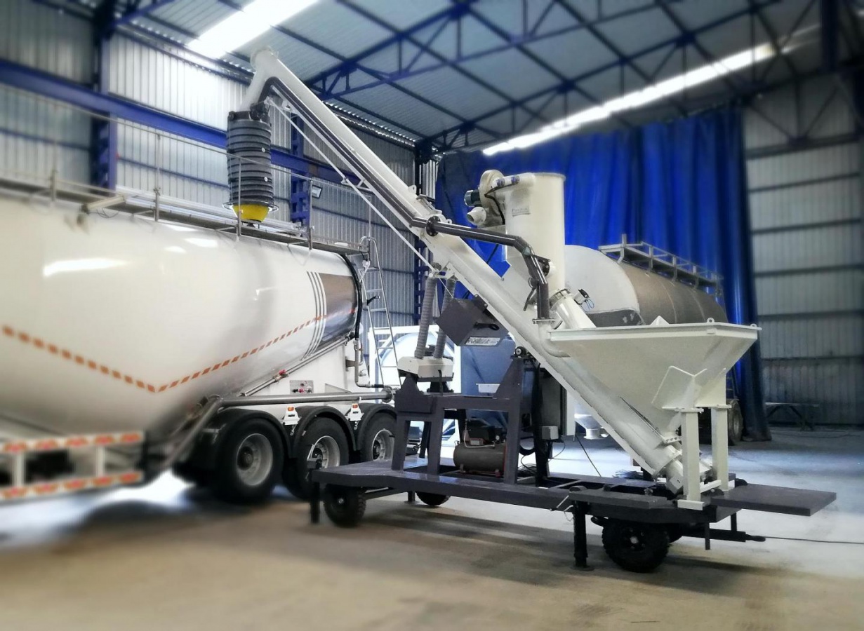 No more worries. Polimak Mobile Big Bag Discharge and Bulk Truck Loading System enables efficient big bag discharge and dust-free loading of bulk materials to tanker trucks. The system consists of a mobile platform, big bag discharger, screw conveyor, loading bellow, and dust collection system. It can be towed by a vehicle to anywhere needed. The upward and downward movable screw conveyor can transfer different types of materials quickly. It can be brought to a horizontal position for easy and safe transport. The loading bellow can be moved up and down with a remote controller and adjust to the height of the truck. It closes the loading hole of the tanker truck to prevent dust leakage. The dust collection system vacuums dust from the loading hopper and the loading bellow, then transfer back to the hopper to prevent the material loss.