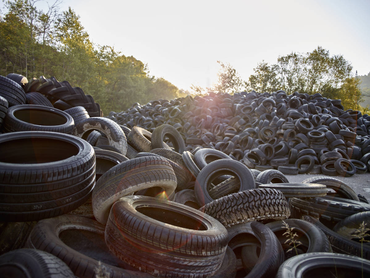 The tyres that are used are production waste coming from the manufacturers as well as waste tyres from trucks and cars. This also means that they vary greatly: their diameters vary between min. 300 and max. 1,600 millimetres, their widths between 100 and 400 millimetres. The average weight is at eight kilograms for the car tyres and around 60 kilograms for the truck tyres.