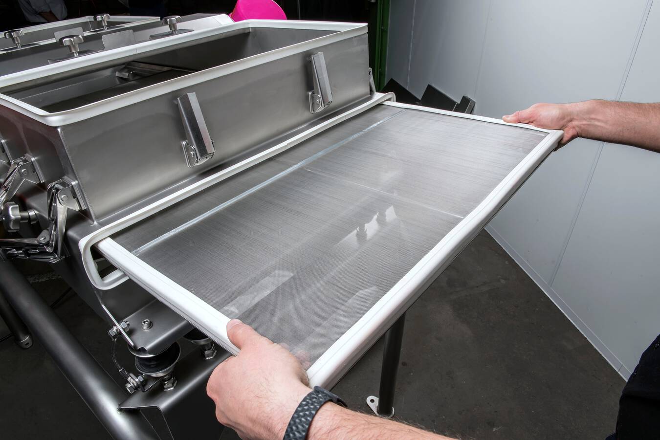 Because the individual products also have different bulk solid properties, the screen had to be flexibly adaptable – an ideal application for the JEL Konti. Many parameters of the Konti can be adjusted, such as for example the screen inclination, oscillation amplitude and even the tilt angle of the vibration motors. This means that several products can be screened without any problem. Because other sieve layers are often used when the product is changed, it is definitely an advantage to be able to change the inserts quickly. Thanks to JEL Konti’s special drawer system this can be carried out within seconds, with just a few flicks of the wrist. Most screening machines first have to be separated from the product feed, so that the machine cover and the individual screen deck can be dismantled and removed from the machine from the top. With the JEL Konti, only a front-side machine cover has to be taken off and then the screen insert can already be pulled from the screen housing like a drawer. Separation from the product feed and discharge is not necessary in this case.