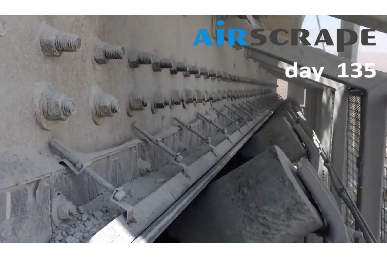The new conveyor belt skirting, the AirScrape runs on high performance 12 months now. The mine confirmed and appreciate, the high cost savings and the clean dust free working places at the conveyor belts.