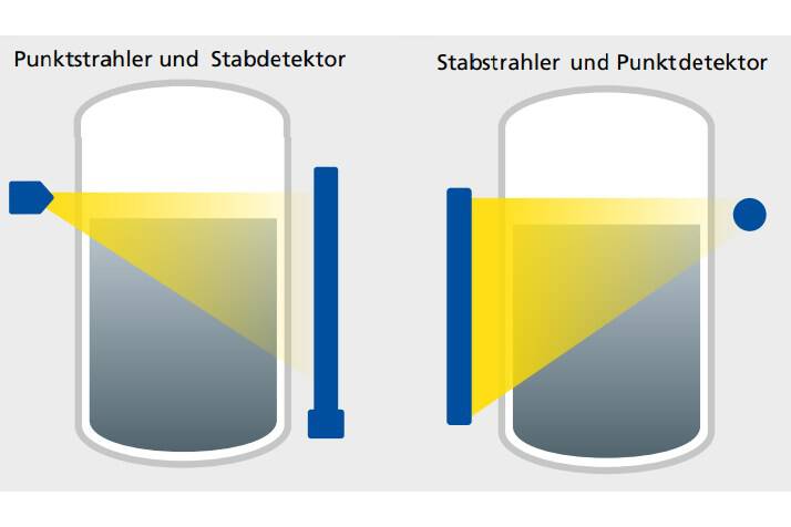 A rod source/point detector arrangement offers numerous advantages that cannot be achieved with a point source/rod detector arrangement. Due to less frequent production downtimes, simpler and thus more economical spare parts inventory, increased long-term and temperature stability and consistent process quality, the higher acquisition costs are mitigated within a short period of time.